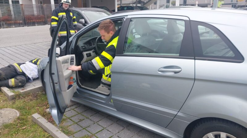 Der Lenker des PKW's wurde dabei im Fahrzeug und unter dem Anhänger des Traktors eingeklemmt. Der Traktorlenker verletzte sich bei diesem inszenierten Unfall und musste ebenfalls aus der Fahrerkabine gerettet werden.